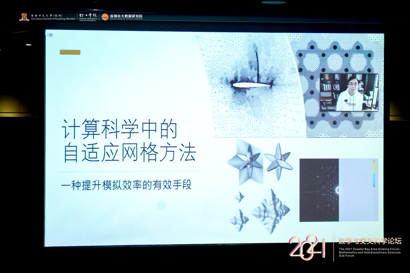 为了促进数学研究中心与兄弟院校的深层次交流合作,拓展湾区学术交流平台,数学研究中心主任汤涛院士、执行主任黄华雄教授及中心部分成员于2021年12月4日-5日参加了香港中文大学(深圳)理工学院与深圳国际工业与应用数学中心联合举办的大湾区科学论坛之数学与交叉学科论坛。此次论坛在大湾区以及深圳先行示范区建设的战略机遇和背景下,定位为小范围、高层次科学论坛。本次论坛邀请到数位在数学与交叉科学相关领域中具有影响力的专家学者共聚一堂分享各自研究成果,聚焦工业、健康、医疗领域中关键基础“卡脖子”数学问题的突破,旨在探讨数学及其交叉科学相关的前沿研究新问题。