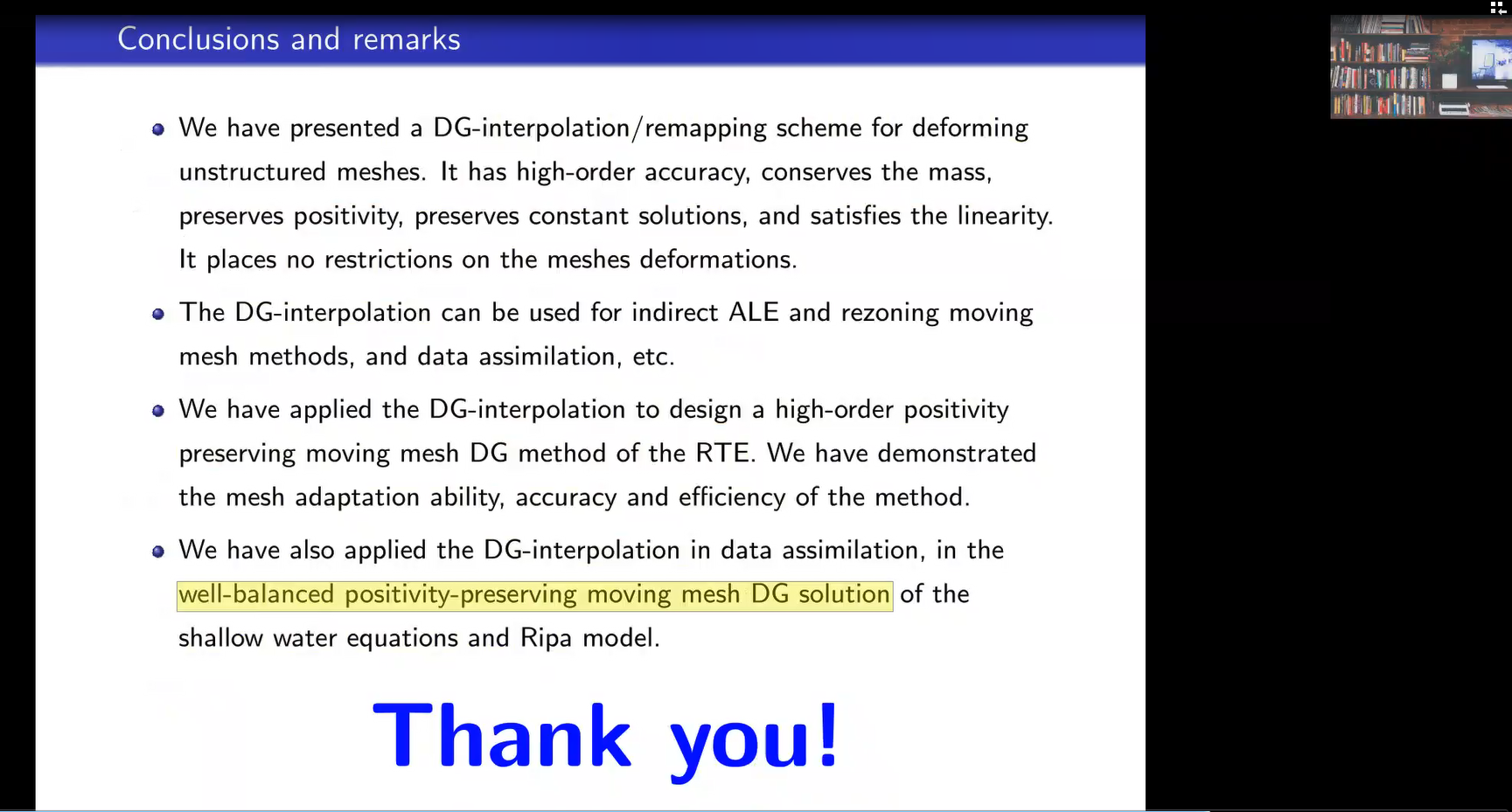 In this talk, we introduce a high-order, conservative, and positivity-preserving interpolation scheme which is developed based on the DG solution of a linear time-dependent equation on deforming meshes with arbitrary deformation. The scheme is aimed to be used for indirect ALE and rezoning moving mesh methods. The cost and positivity preservation (with a linear scaling limiter) of the DG-interpolation are investigated. Numerical examples are presented to demonstrate the properties of the interpolation scheme. The DG-interpolation is applied to the rezoning moving mesh DG solution of the radiative transfer equation. Numerical results obtained for examples in one and two spatial dimensions with various settings show that the resulting rezoning moving mesh DG method maintains the same convergence order as the standard DG method, is more efficient than the method with a fixed uniform mesh, and is able to preserve the positivity of the radiative intensity.