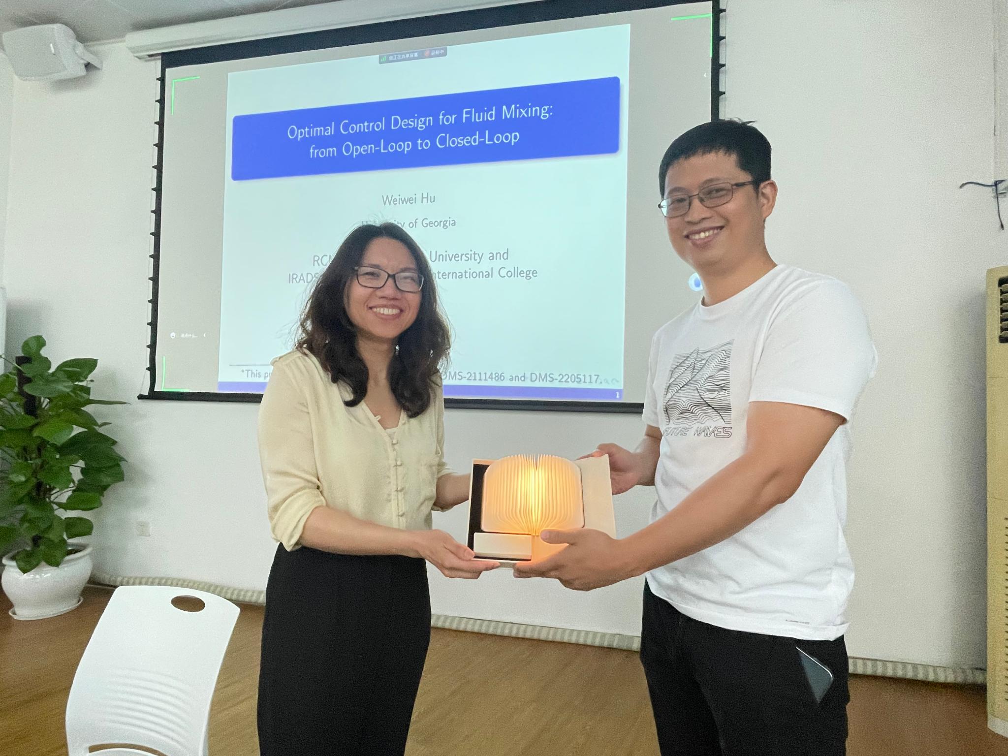 Weiwei Hu is an Associate Professor of Mathematics at the University of Georgia, Athens (UGA). Before joining UGA, Dr. Hu hold a tenure-track position in the Department of Mathematics at the Oklahoma State University (OSU) from August 2016 to July 2019. She also held a Postdoctoral Fellowship at the Institute for Mathematics and its Applications (IMA), University of Minnesota, on the program “Control Theory and its Applications” from September 2015 to August 2016, and a non-tenure-track Assistant Professor position in the Department of Mathematics at the University of Southern California (USC) from August 2012 to May 2015. She received her doctorate in Applied Mathematics at Virginia Tech (VT) in May 2012. Dr. Hu’s current research interests include mathematical control theory of partial differential equations, optimal control of transport and mixing, computational methods for optimal control design and model reduction.