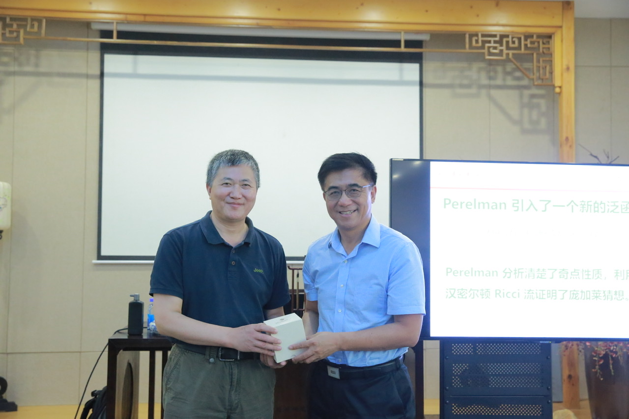 Prof. Jiayu Li(left) is receiving a souvenir from Prof. Tao Tang (right)