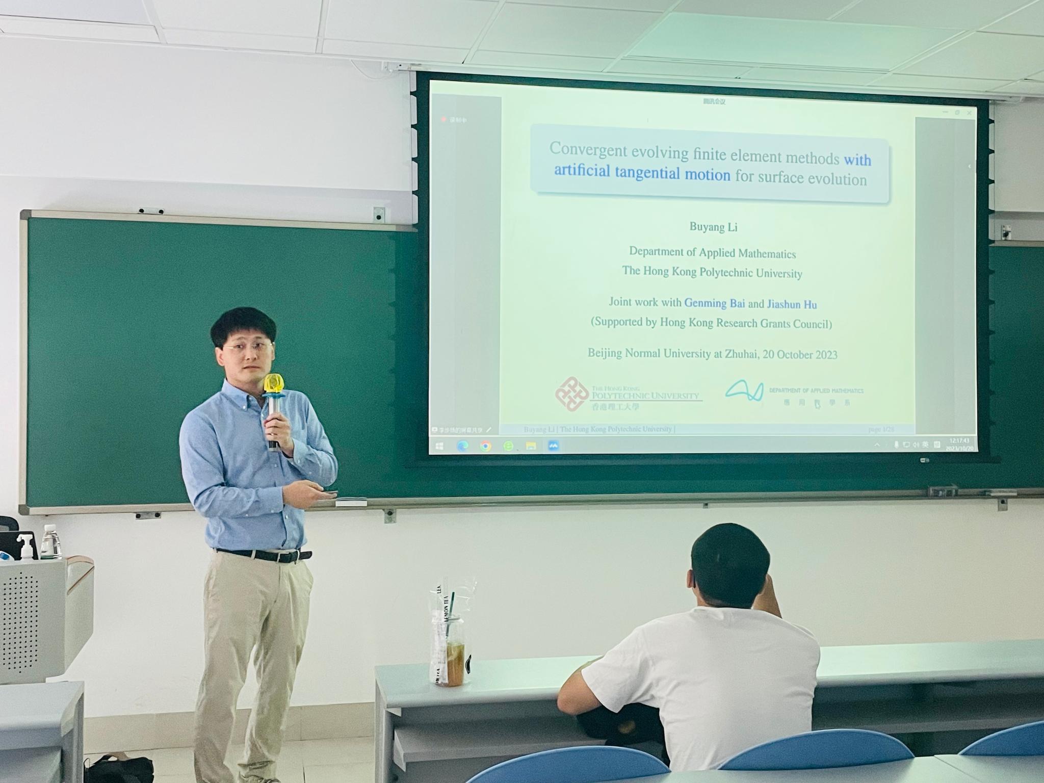 Prof. Buyang Li received his PhD from the City University of Hong Kong in 2012. He has been engaged in teaching and scientific research at Nanjing University and University of Tübingen (Germany), and is currently a professor in Department of Applied Mathematics at The Hong Kong Polytechnic University. His research areas are mainly scientific computing and numerical analysis of partial differential equations, including parametric finite element method and its analysis for geometric curvature flow, numerical approximation to rough solutions of nonlinear dispersion and wave equations, numerical solution of incompressible Navier–Stokes equations, PML methods for the Helmholtz equation, nonlinear parabolic and phase-field equations, fractional partial differential equations, and so on. He received the Hong Kong Mathematical Society Young Scholars Award in 2022, the Hong Kong Research Grants Council Research Fellow Award in 2023, and is a member of editorial boards for Mathematics of Computation, SIAM Journal on Numerical Analysis, IMA Journal of Numerical Analysis, and some other journals.