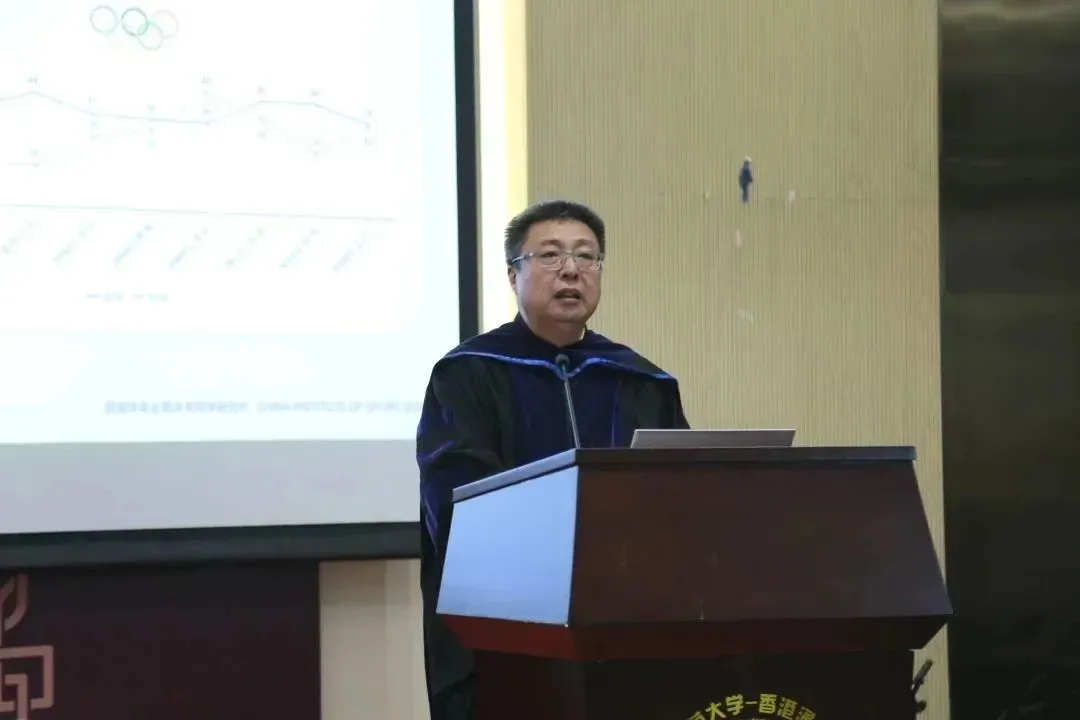 曹教授的演讲以“中美奥运博弈的机遇、挑战与对策”为主题,介绍了在奥运项目中美博弈常态化的背景下,中、美两国在奥运会项目中取得的成绩以及对未来发展的规划和竞争策略。