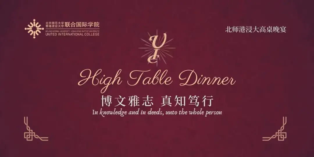 UIC高桌晚宴是从英国牛津、剑桥大学传统的学堂晚餐(FORMAL HALL) 基础上发展而来, 每次均邀请各界鸿儒名士进行演讲,有一套庄重的仪式,它既是学生舍堂举行的一种学术活动,也是确立师生关系、尊重学术的一种礼仪活动。2007年初,UIC将高桌晚宴引入校园,经过十六年的实践,已成为UIC交流学术、了解世界、弘扬国学的重要平台。
