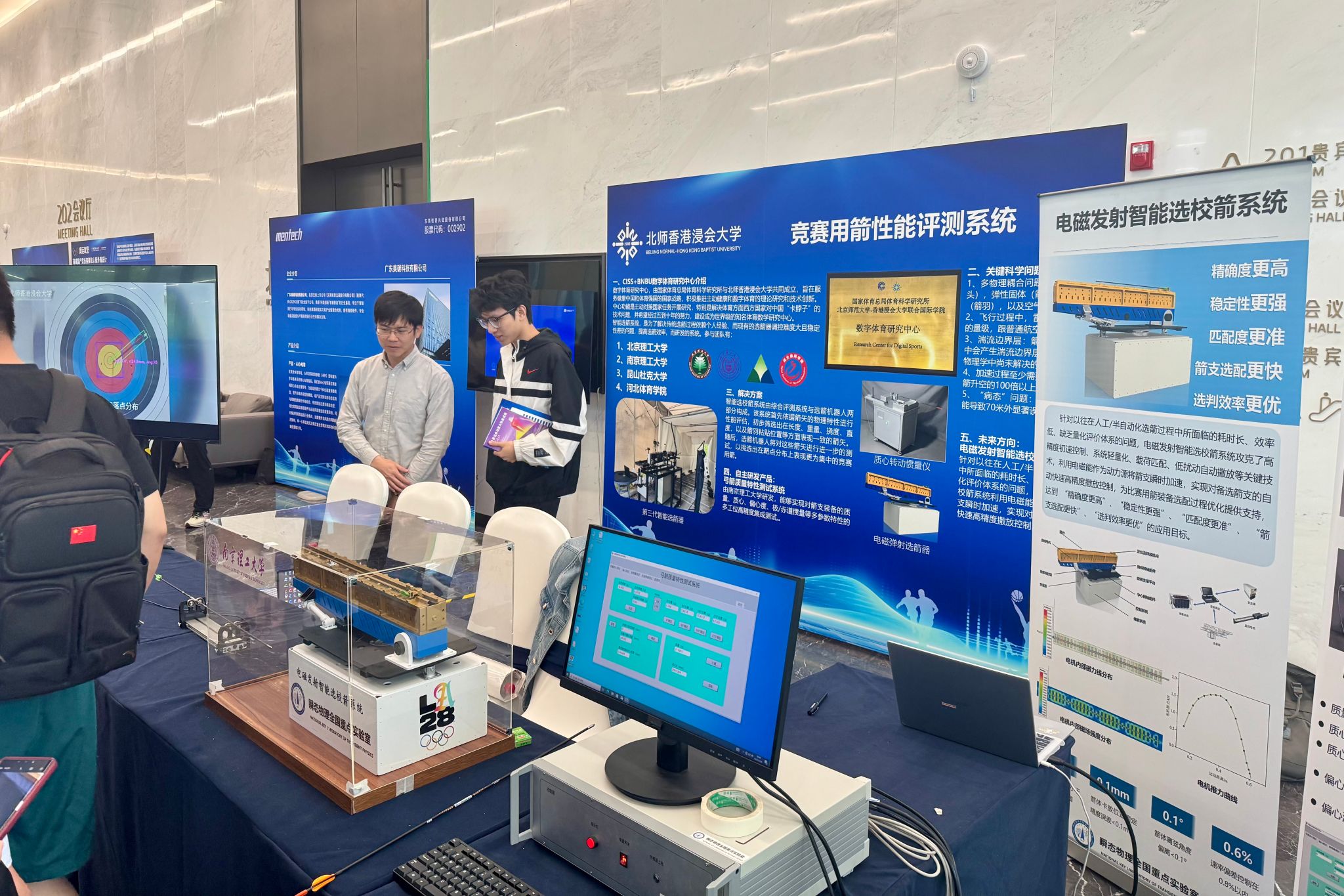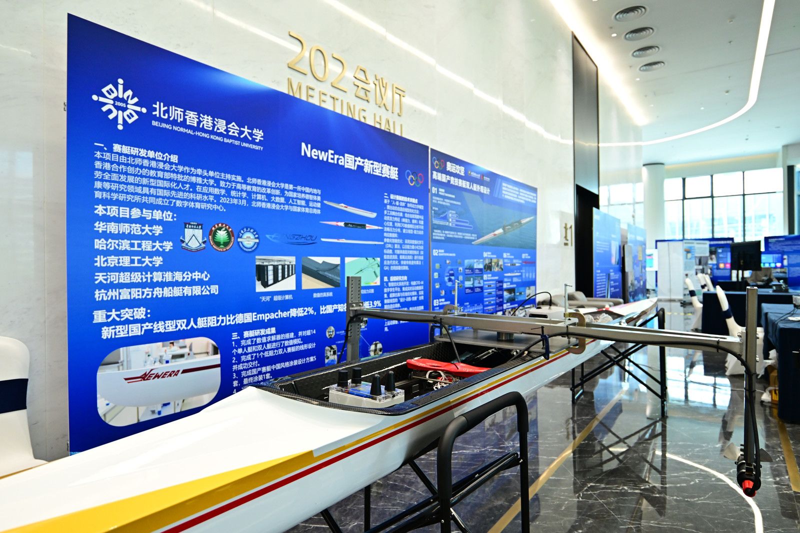2025年5月28日,在由国家体育总局体育科学研究所主办的“奥运攻关技术创新联合体成立仪式”上,北师香港浸会大学(BNBU)数字体育研究中心牵头开展的“NewEra国产新型赛艇”与“竞赛用箭性能评测系统”两大核心科技项目惊艳亮相,成为通明湖会展中心成果展上一大亮点。中心团队携最新科研成果参展,吸引了众多与会领导、专家学者及社会各界的驻足关注。仪式期间,国家体育总局科教司司长陈志宇,国家体育总局体育科学研究所党委书记、所长曹景伟亲临北师港浸大展位,饶有兴致地听取了项目团队关于核心技术难点攻关和创新成果的详细汇报,并对中心取得的突破性进展表示高度赞赏和由衷的欣喜。
